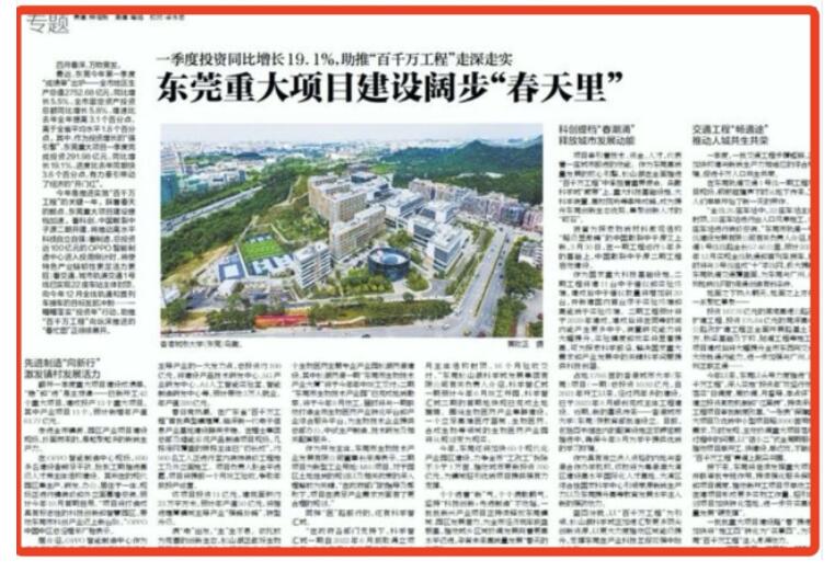 南方日報要聞|壹季度投資比增19.1%!東莞重大項目助推“百千萬工程”走深走實