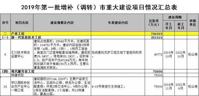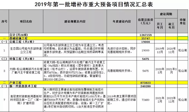 2019東莞市第壹批增補(bǔ)重大項(xiàng)目