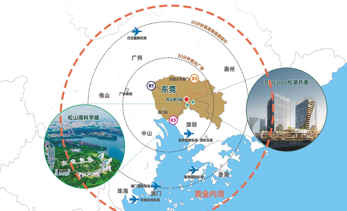松山湖國家高新區(qū)(科學城)地處東莞中部,與深圳市光明科學城接壤。2001年設立產(chǎn)業(yè)園區(qū),2010年升格為國家級高新區(qū),總規(guī)劃控製面積103平方公裏;2018年,在松山湖國家高新區(qū)部分區(qū)域基礎上,整合大朗、大嶺山、黃江等周邊鎮(zhèn)部分區(qū)域共90.5平 方公裏,規(guī)劃建設松山湖科學城;2020年7月,與深圳光明科學城共同獲批建設大灣區(qū)綜合性國家科學中心先行啟動區(qū)。