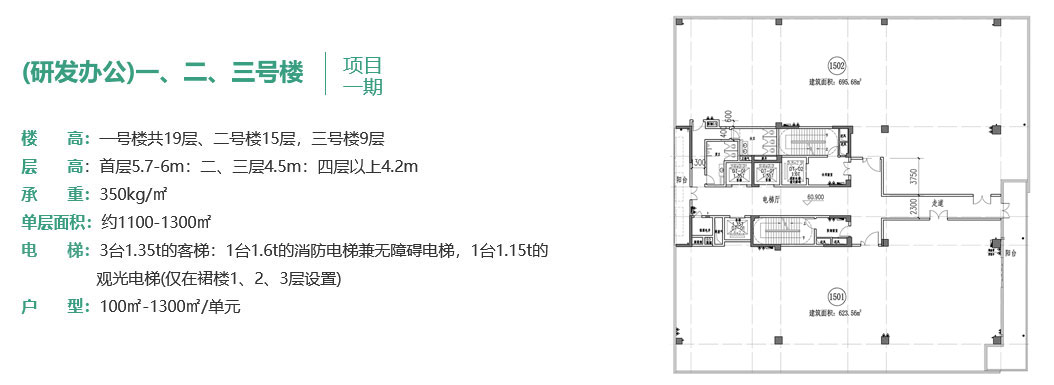 項目占地11.1萬平方米,總建築面積近32萬平方米,一期建築面積12萬平方米,由6棟研發(fā)辦公總部樓組成,擁有地下車位755個,首期將於2024年下半年竣工交付。項目二期為M0新型產(chǎn)業(yè)用地,總建築面積20萬平方米,由5棟生產(chǎn)廠房、2棟宿舍和1棟配套服務(wù)樓組成,擁有地上地下車位1240個,該項目計劃於2024年內(nèi)動工建設(shè)。